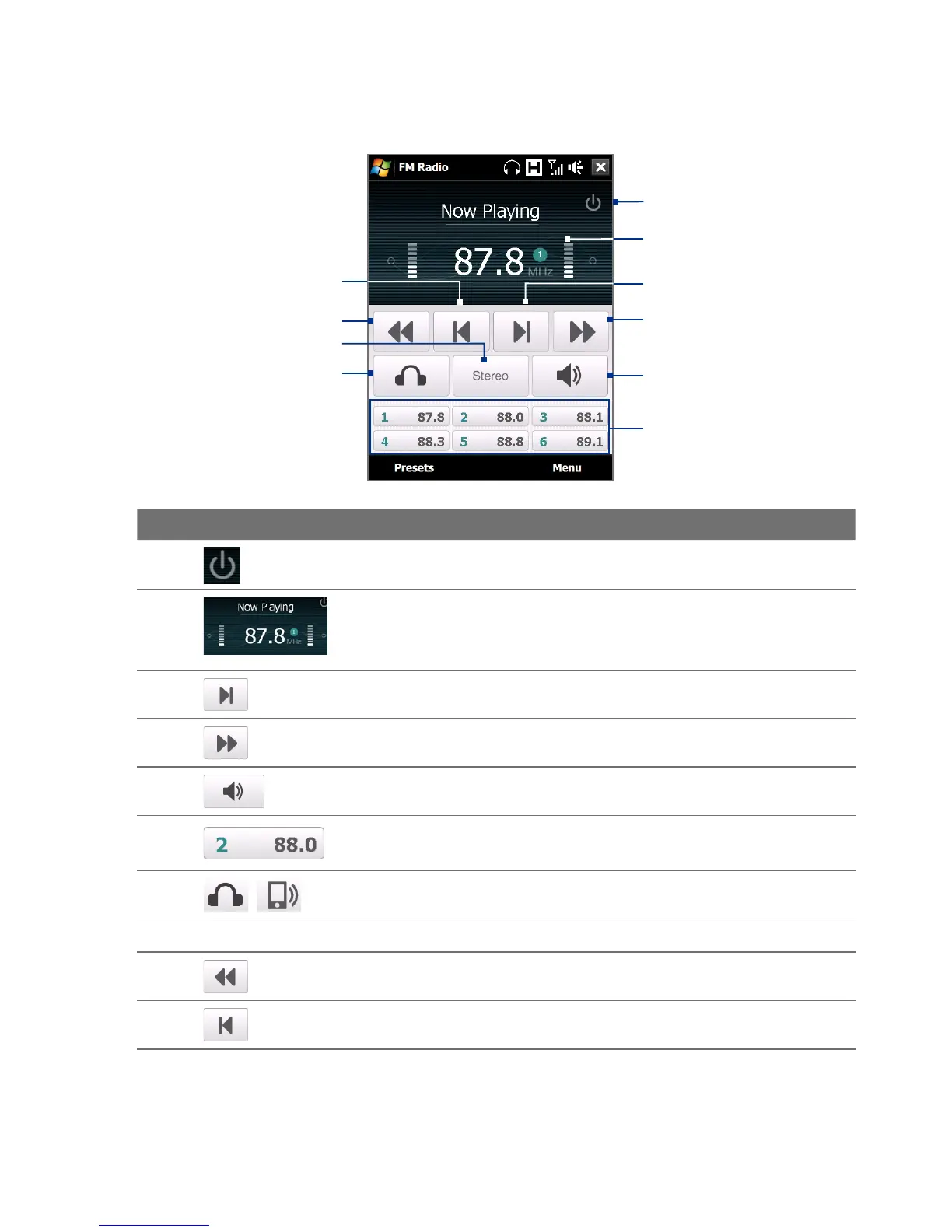 FM Radio controls