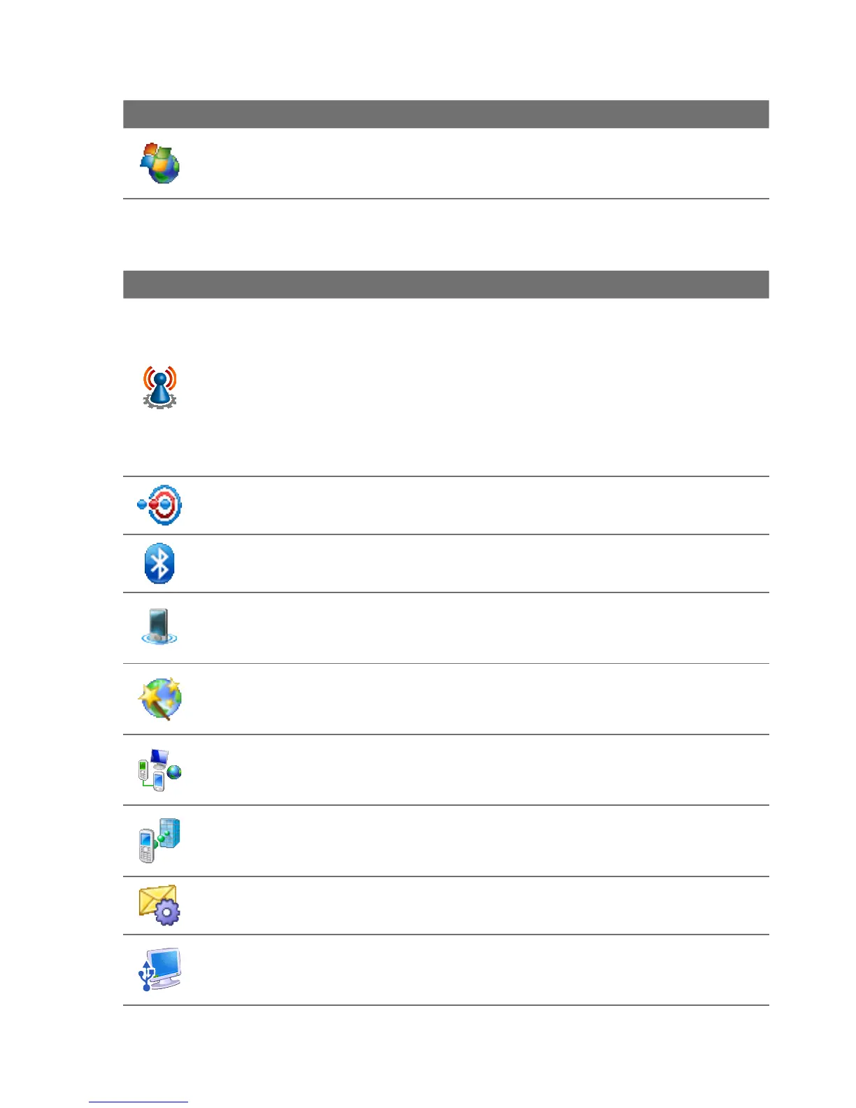 Comm Manager Manage your device’s connections (including GPRS/3G
