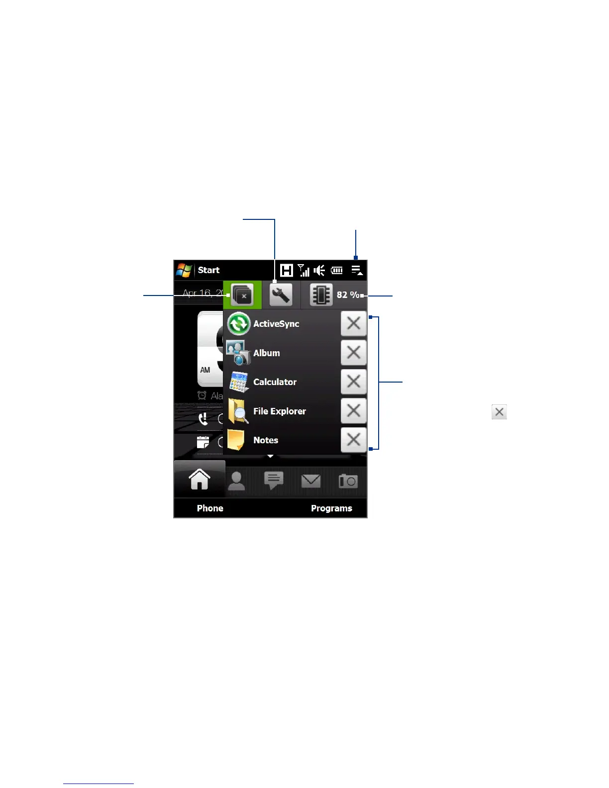 screen, shows the currently running programs. You can quickly switch