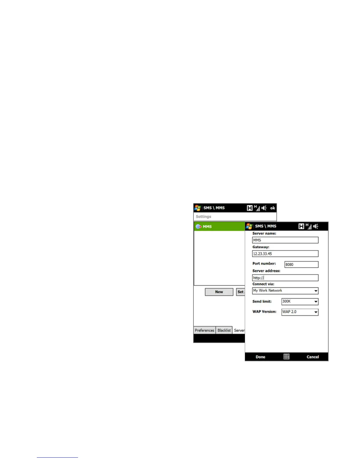 MMS settings. Add the MMS settings of your wireless service provider if there are no