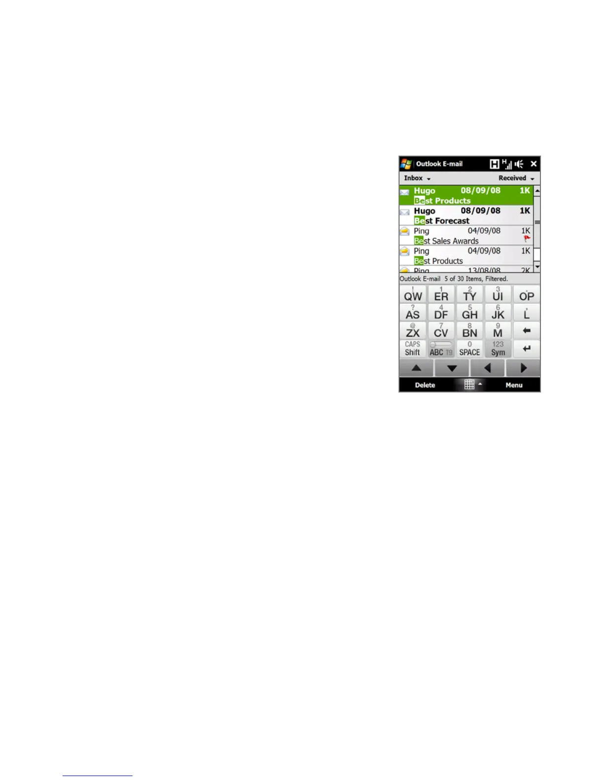 Enter the sender name or e-mail subject you