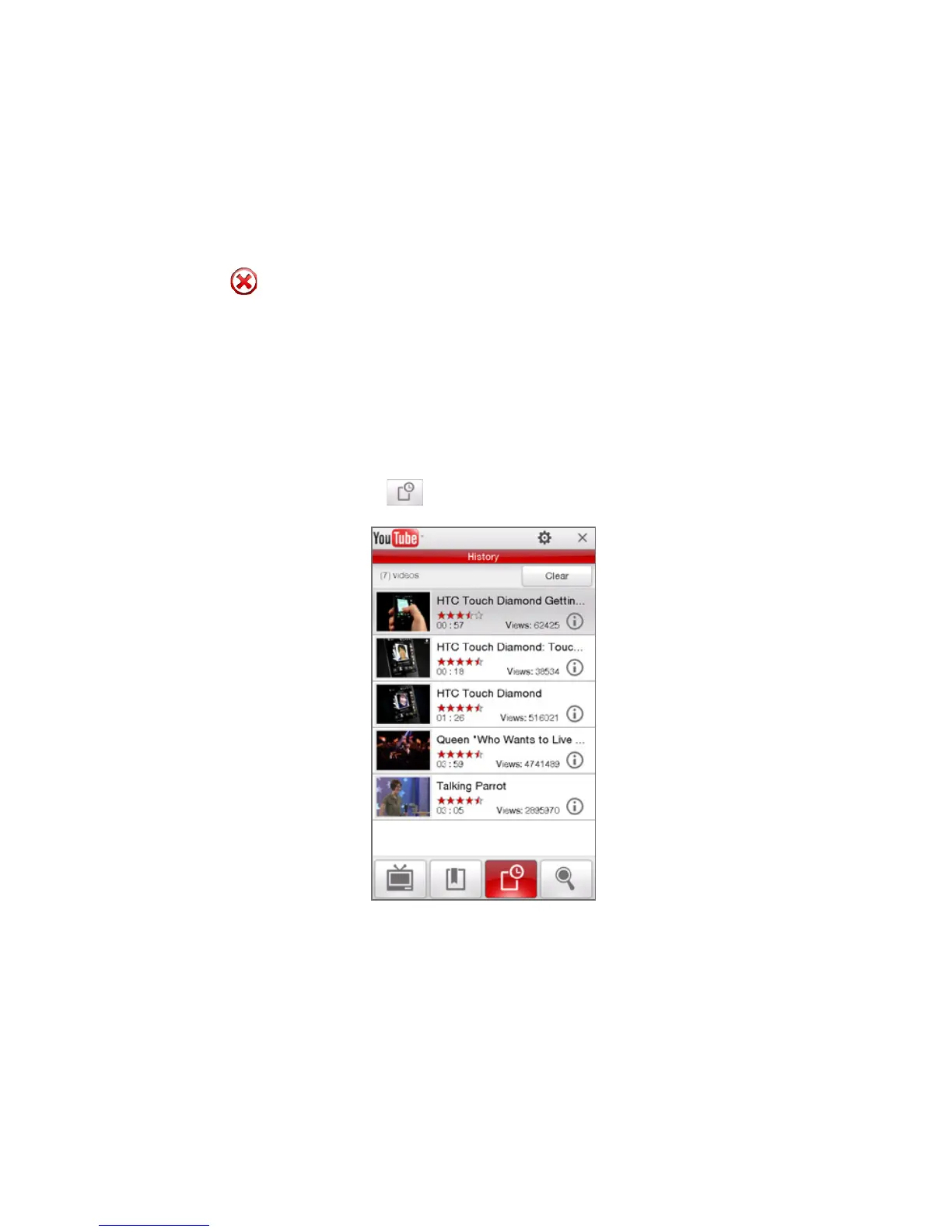 Note To clear the History list, tap Clear.