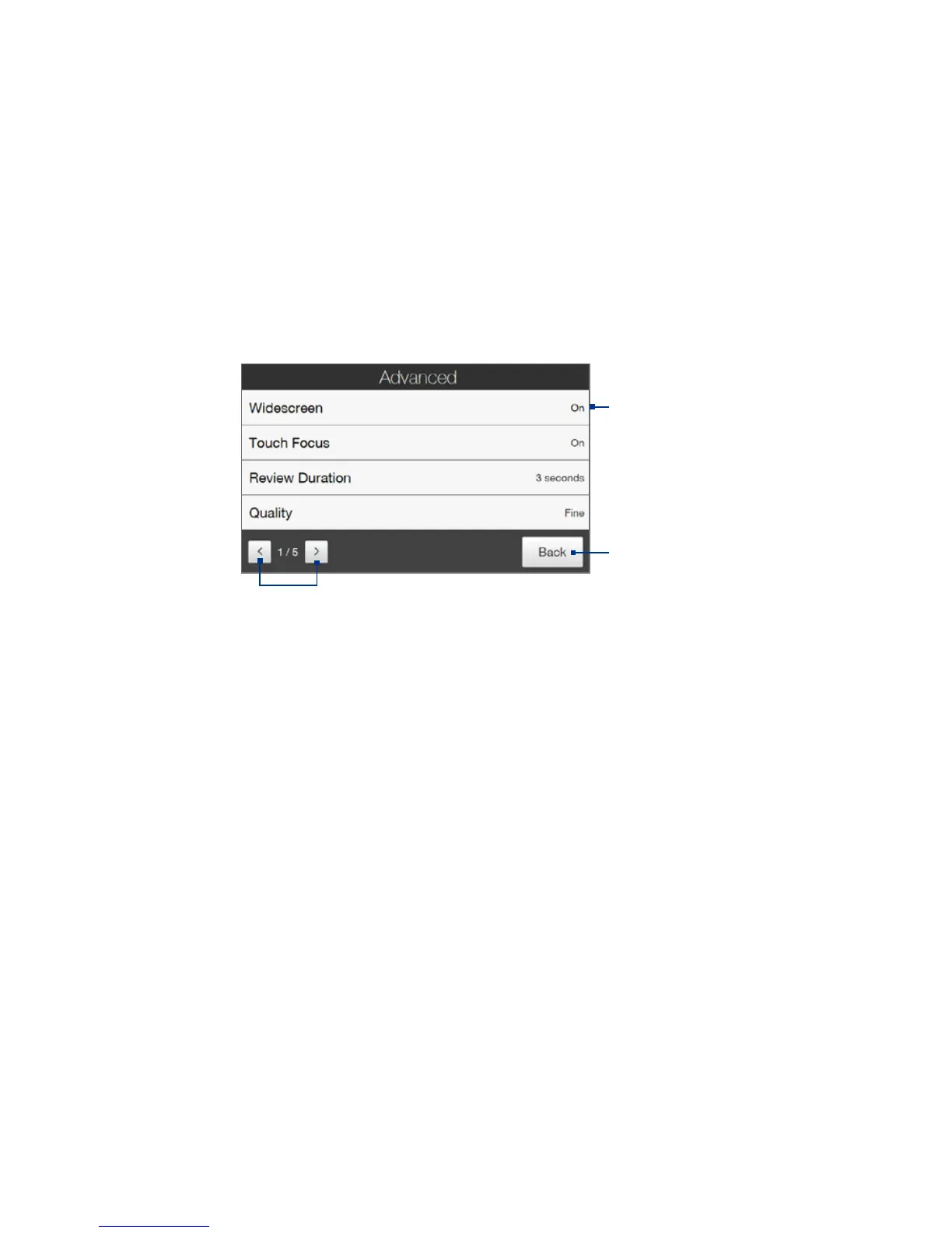 and set Camera program preferences. Access the Advanced options by tapping
