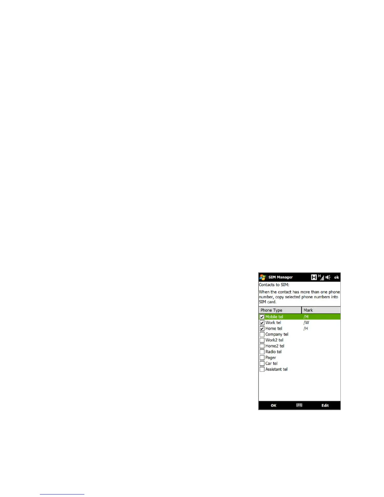 1. On the SIM Manager screen, select the desired contact, or select all SIM