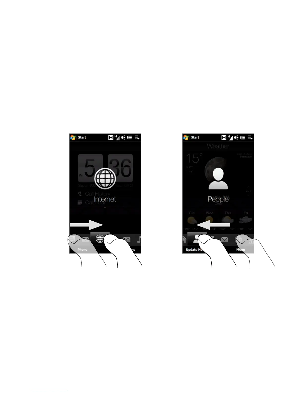To switch between the tabs of the Home screen