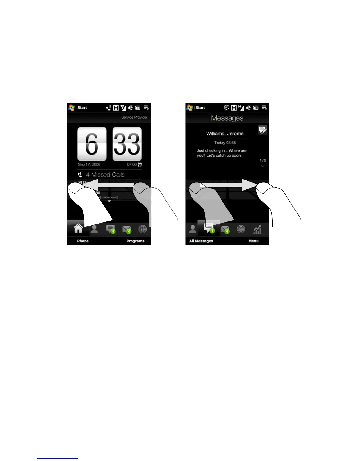 Swipe left across the screen to move to the next tab, and swipe right across
