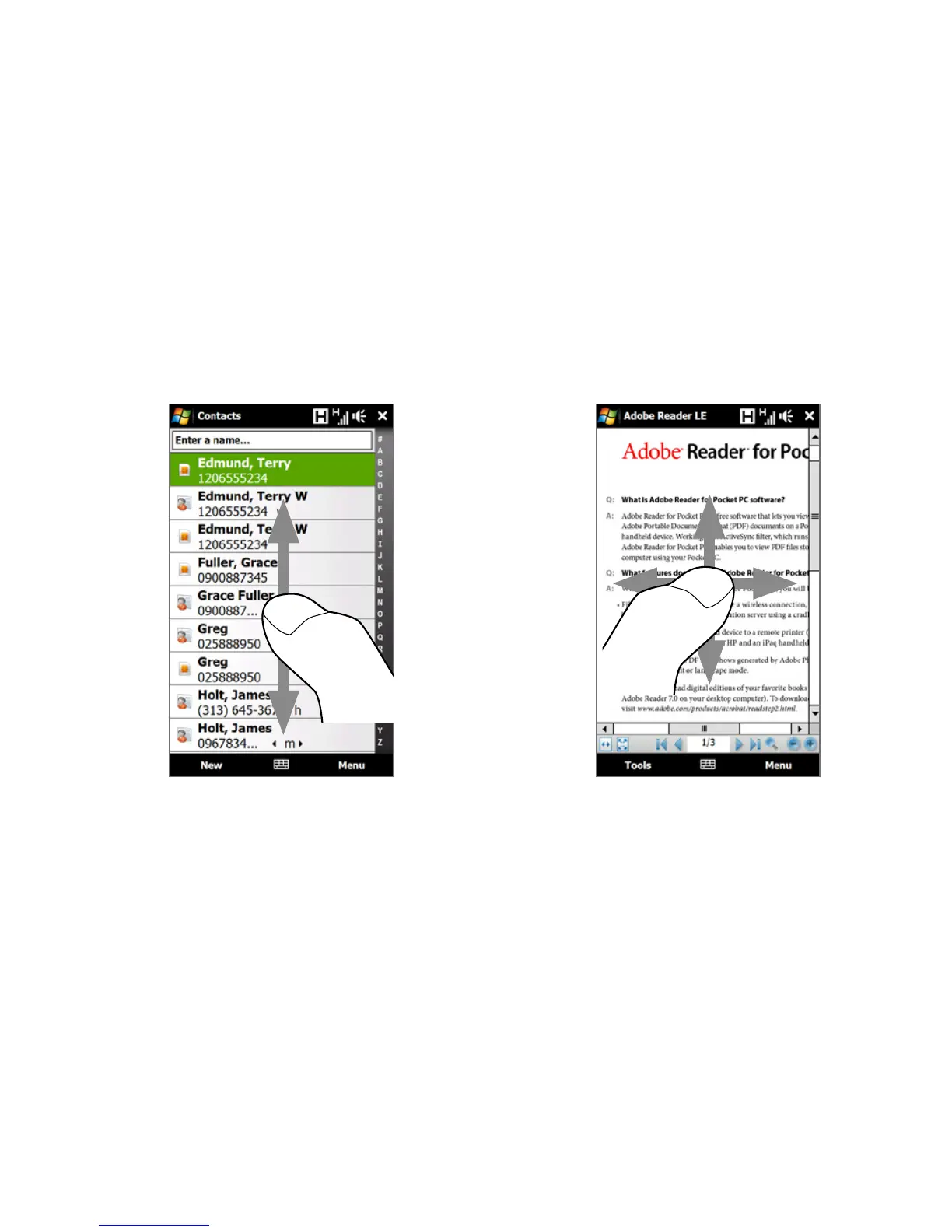 Finger scrolling can be used to scroll up and down web pages, documents, and lists