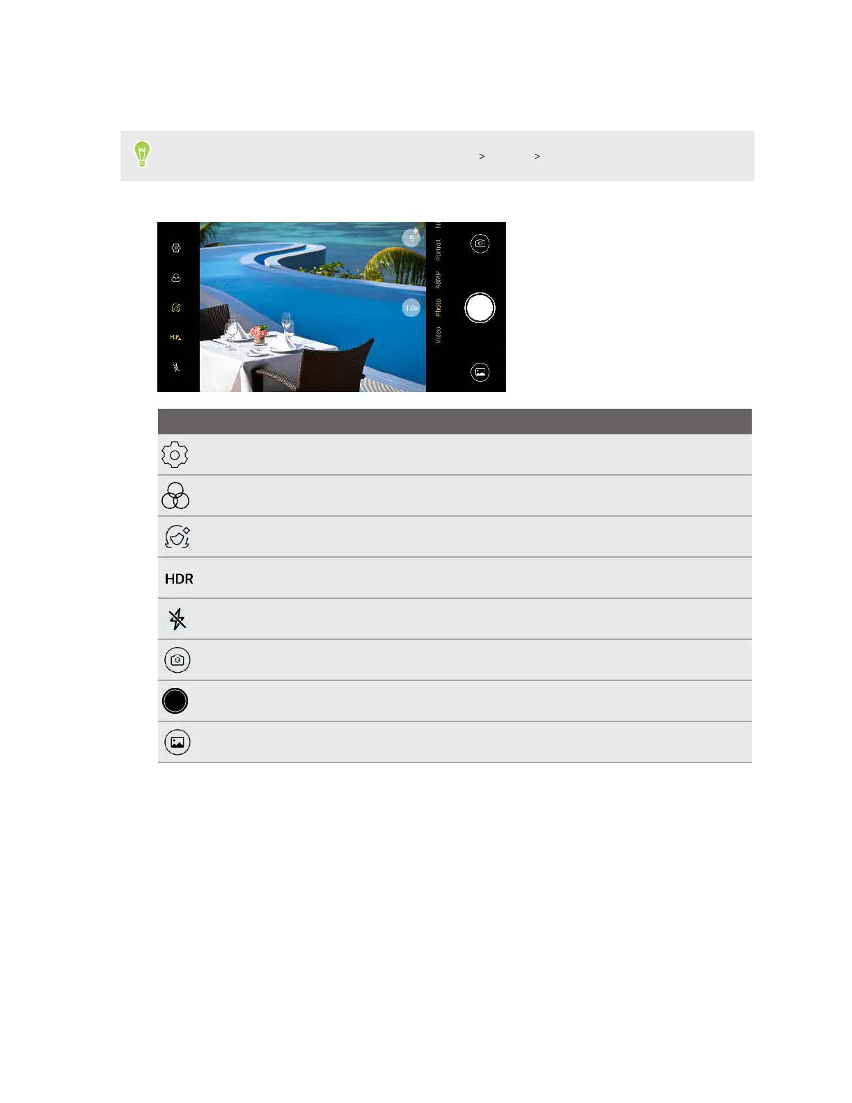 § On the Home screen, tap the camera icon to open the Camera app.