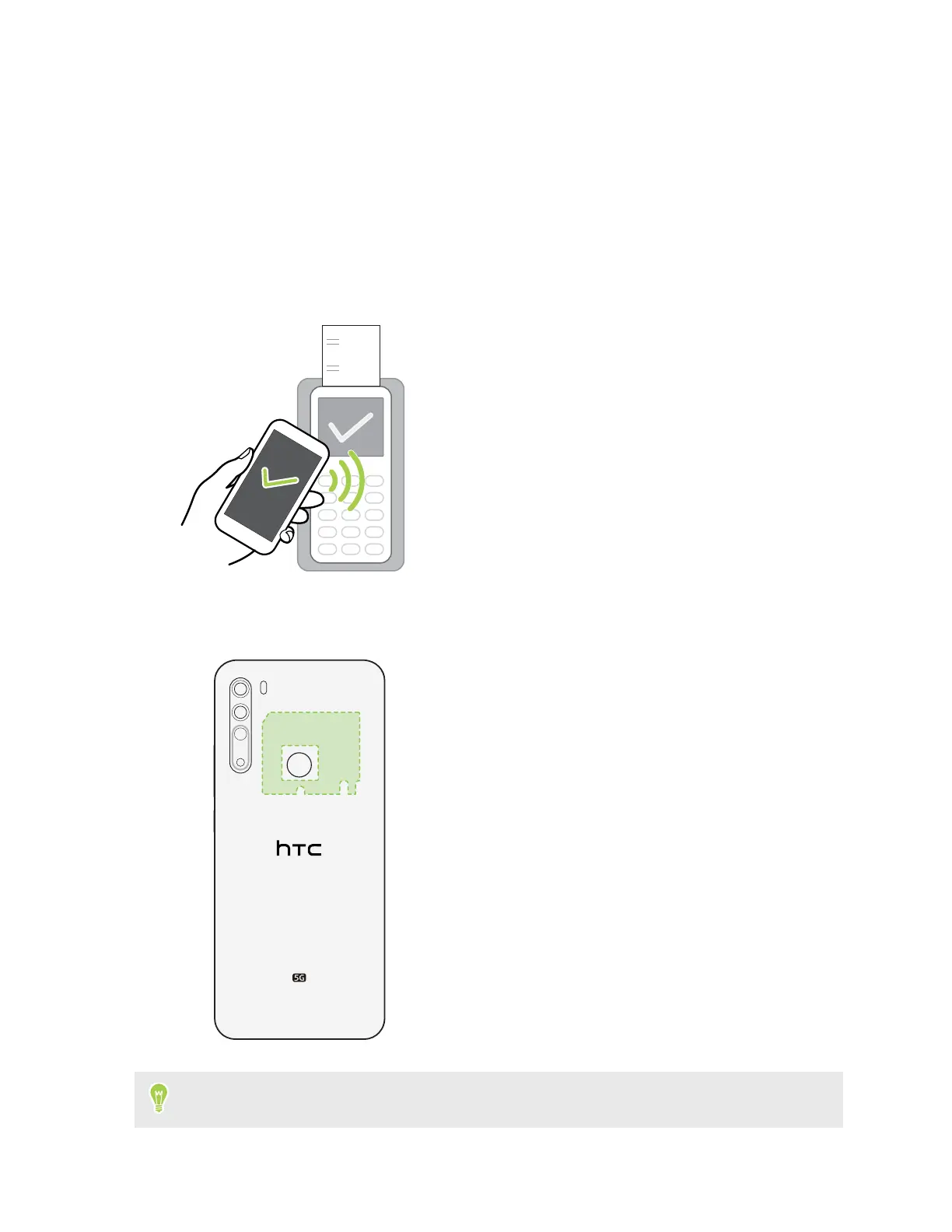 on the back of HTC U20 5G is close to the terminal, card, or device when you tap your phone.