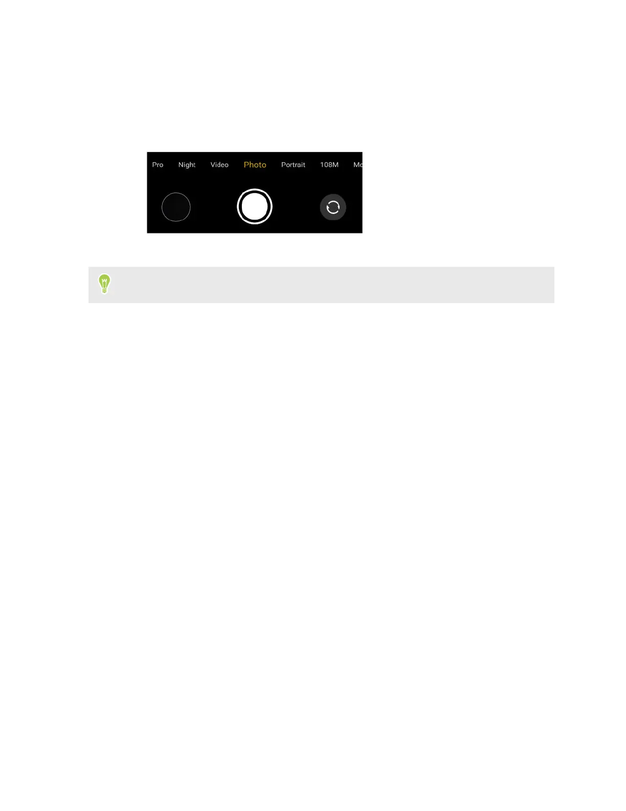 1. To scroll through the capture modes, swipe left or right above the shutter release button in