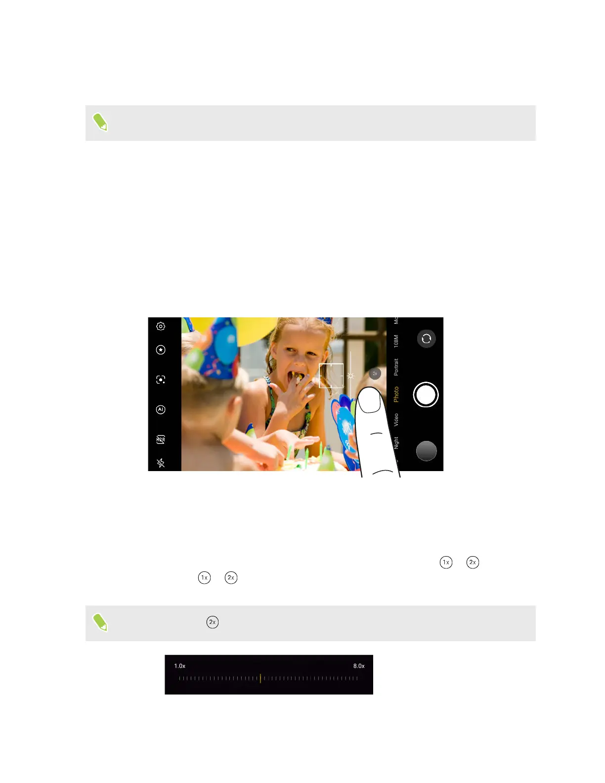 § Tap the button that shows the zoom ratio you want to use such as or .