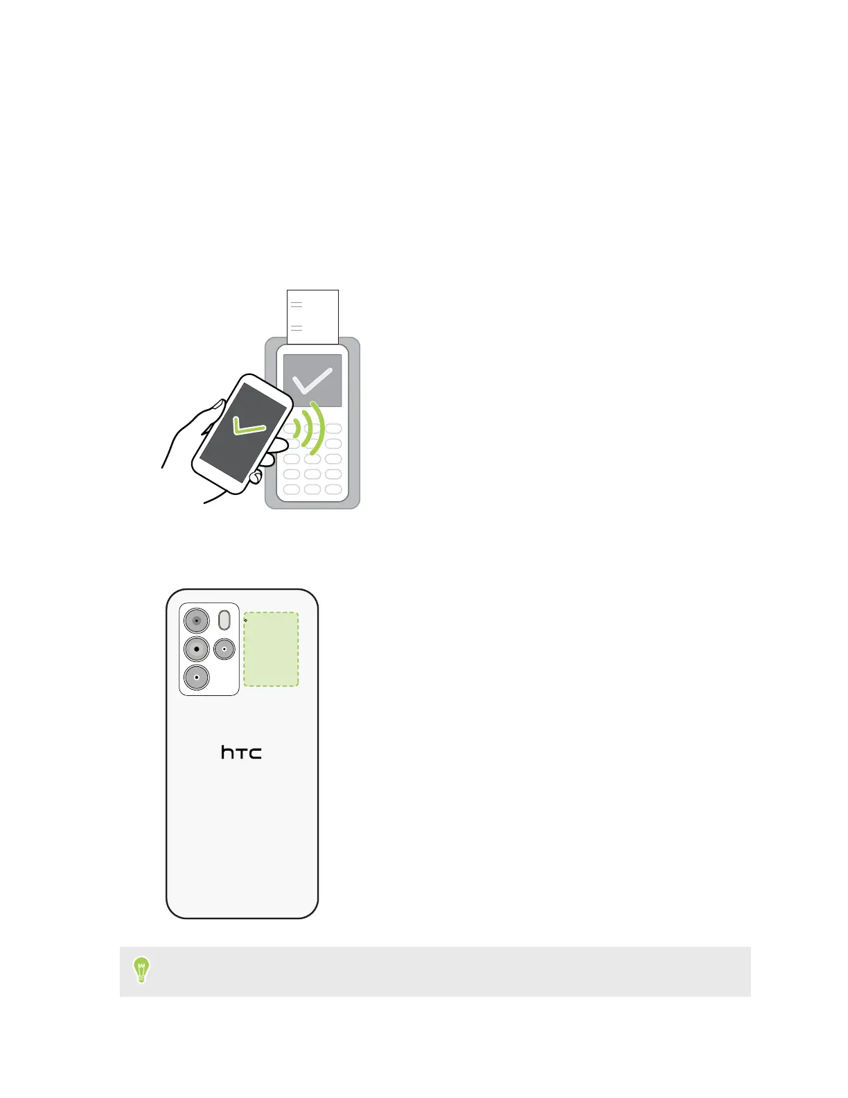 on the back of HTC U23 pro is close to the terminal, card, or device when you tap your phone.