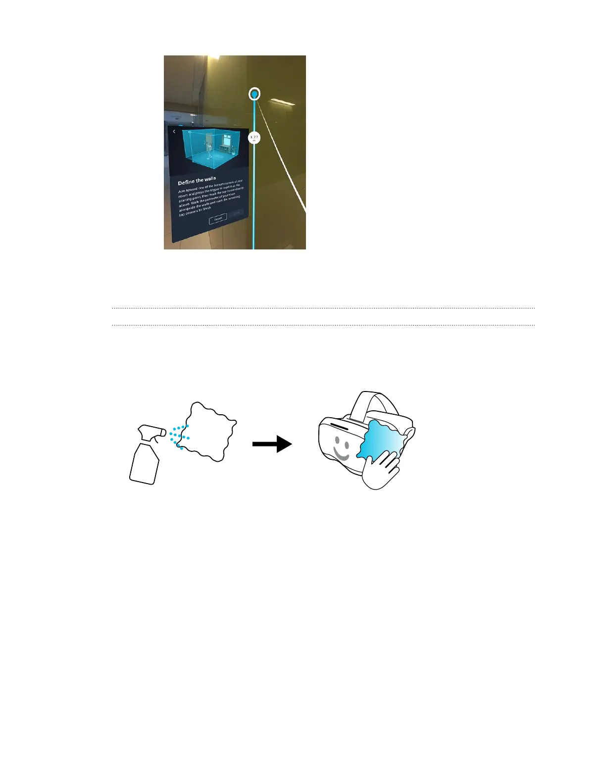and use it to wipe the hard surfaces of the headset and controllers clean, especially places