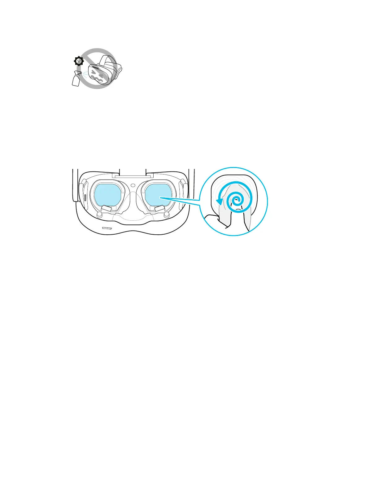 § Don’t spray or pour liquid directly on the headset or controllers.