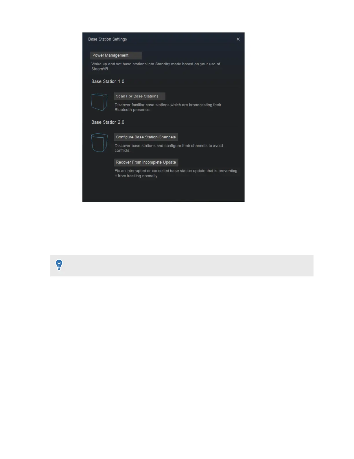 3. Under Base Station 2.0, click Configure Base Station Channels. SteamVR will scan for