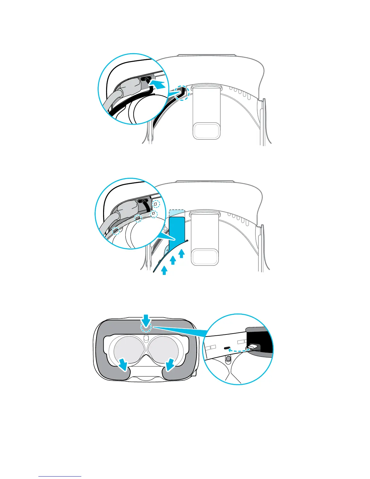 5. Replace the face cushion by inserting its tab into the slot on the headset, and then aligning