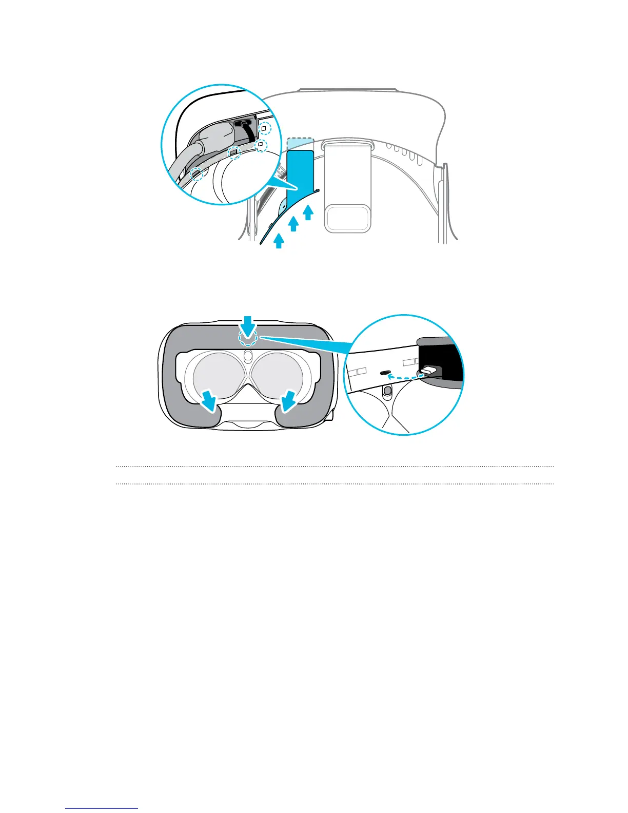 6. Replace the face cushion by inserting its tab into the slot on the headset, and then aligning