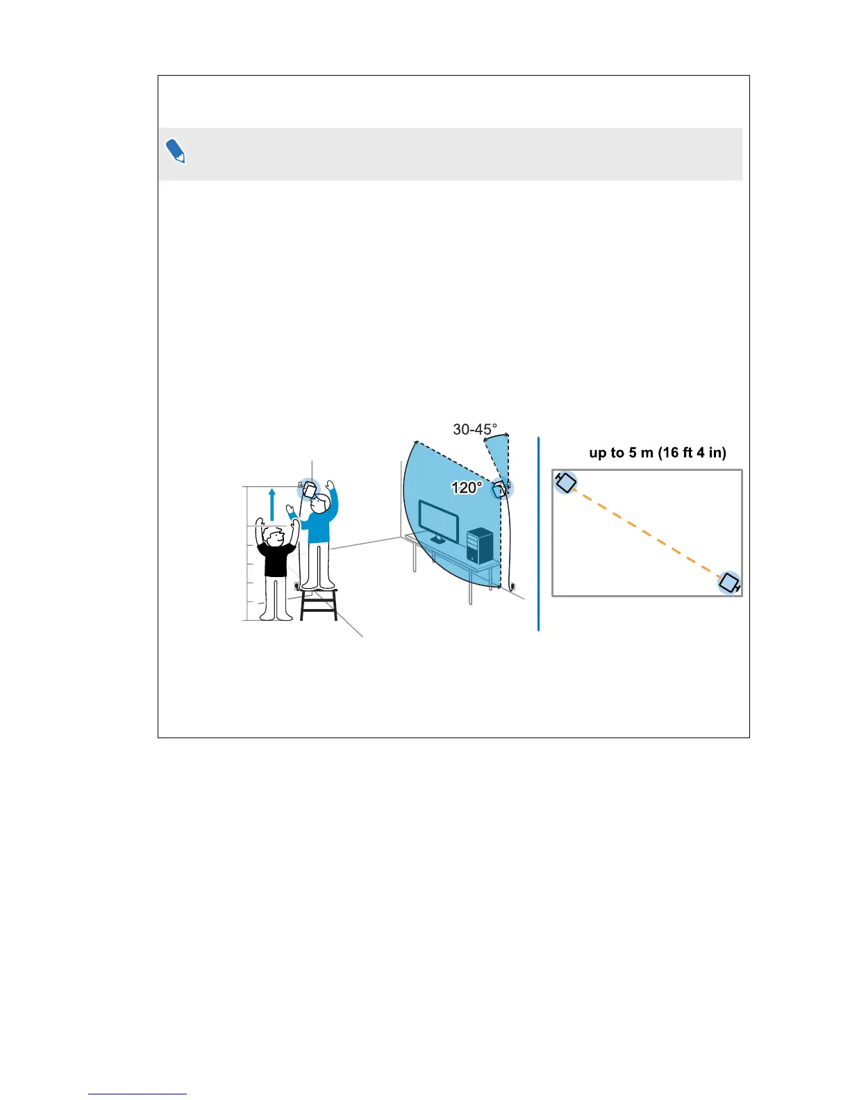 § Mount the base stations diagonally and above head height, ideally more than 2 m (6