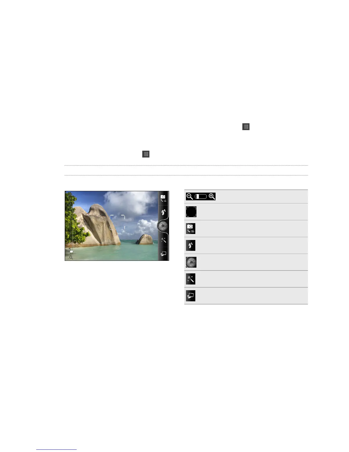 You’ll find the following onscreen controls on the Viewfinder screen: