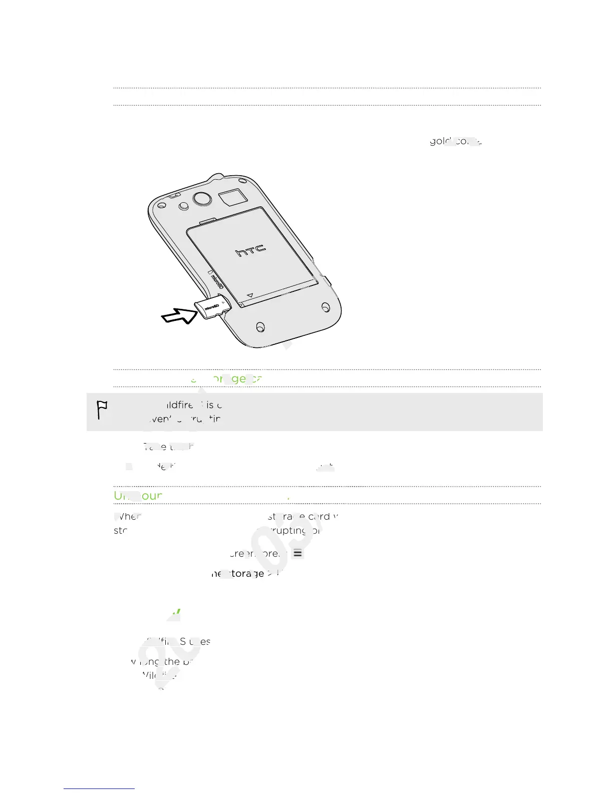 When you need to remove the storage card while HTC Wildfire S is on, unmount the