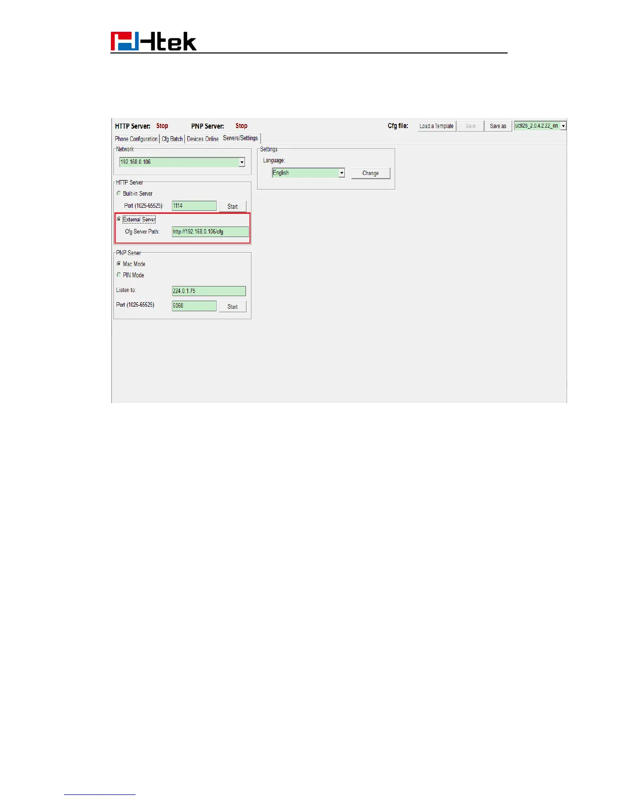 5. Start PNP server. For the Htek phones, fill “Listen to” box with “224.0.1.75” and fill “Port”