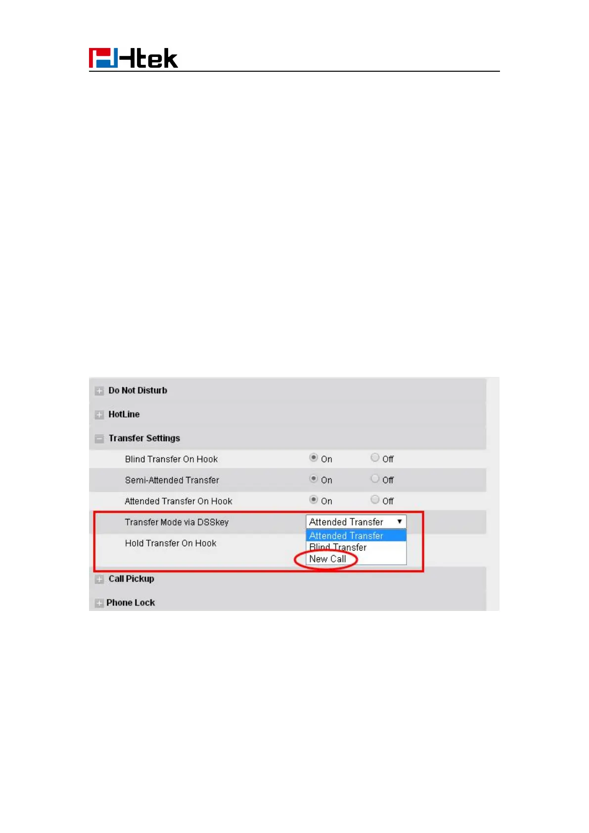 2. Select Transfer Mode via DSS key → New Call