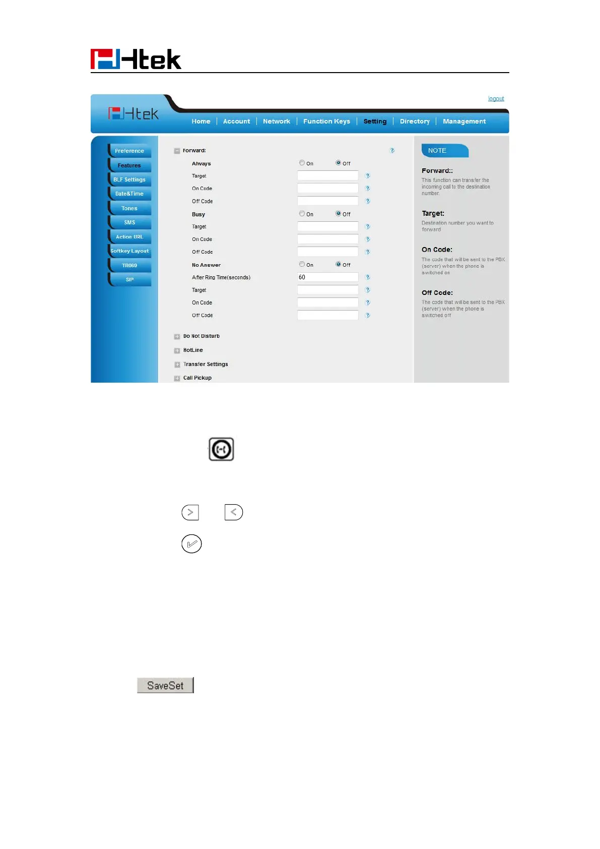 To cancel the forward feature via Web Interface