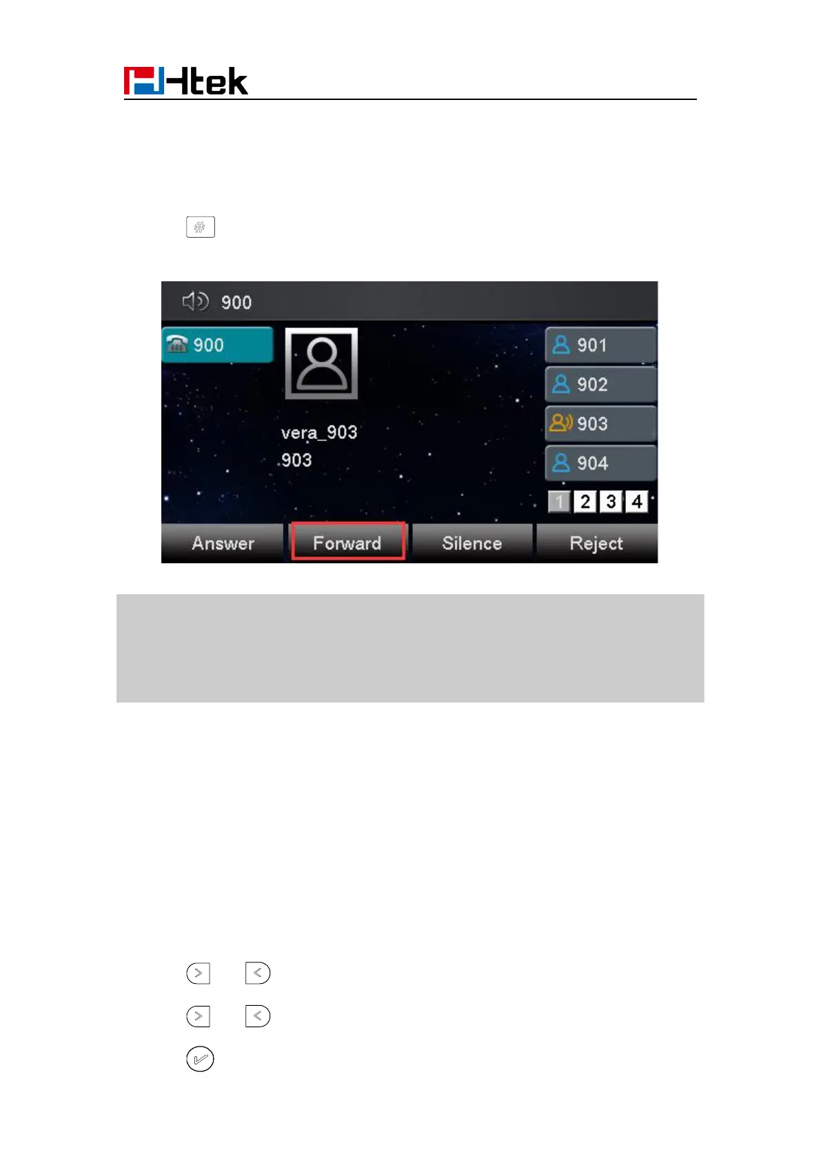 1. When the phone is ringing, press Forward soft key.
