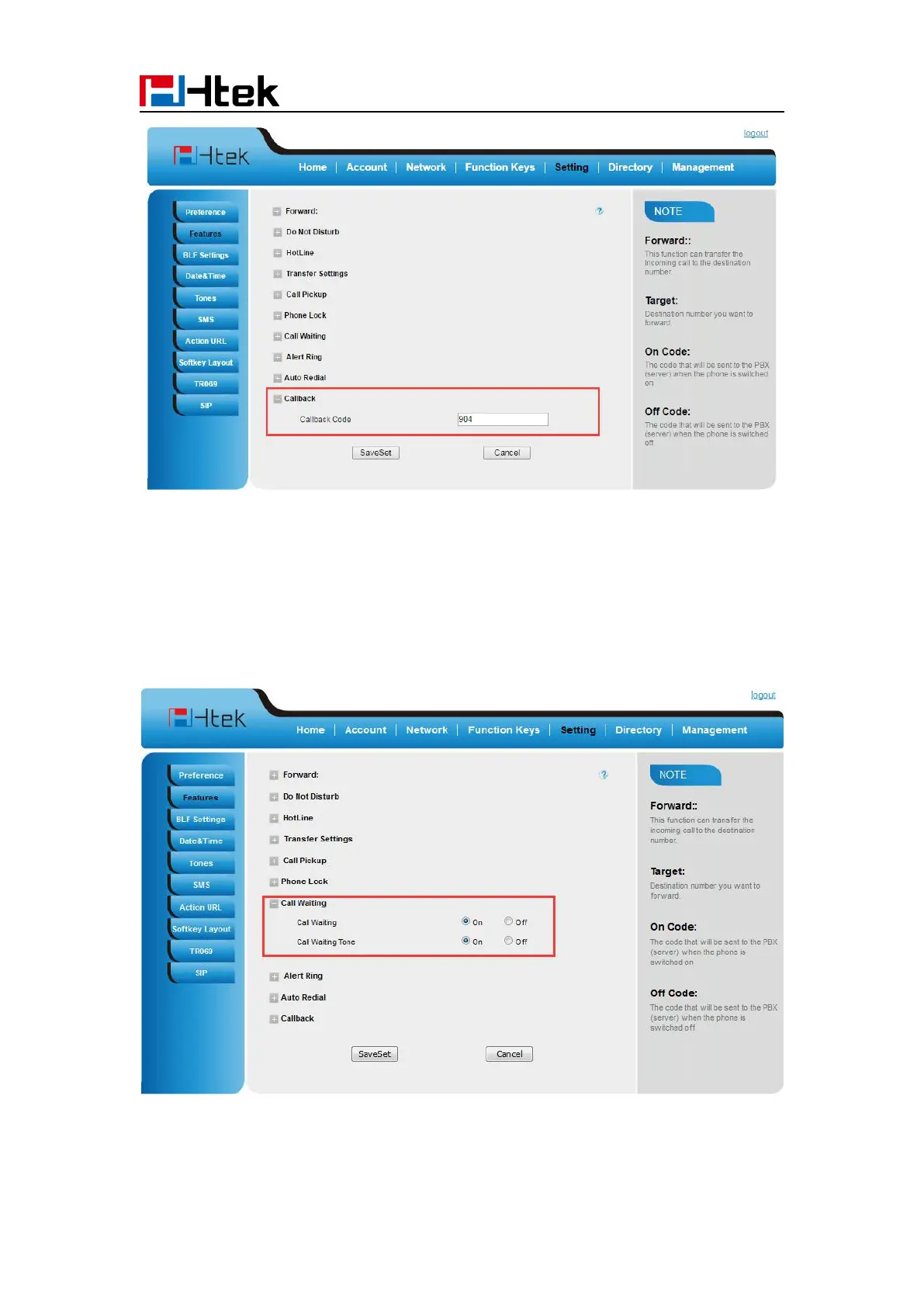 2. Select Call Waiting: On and Call Waiting Tone: On