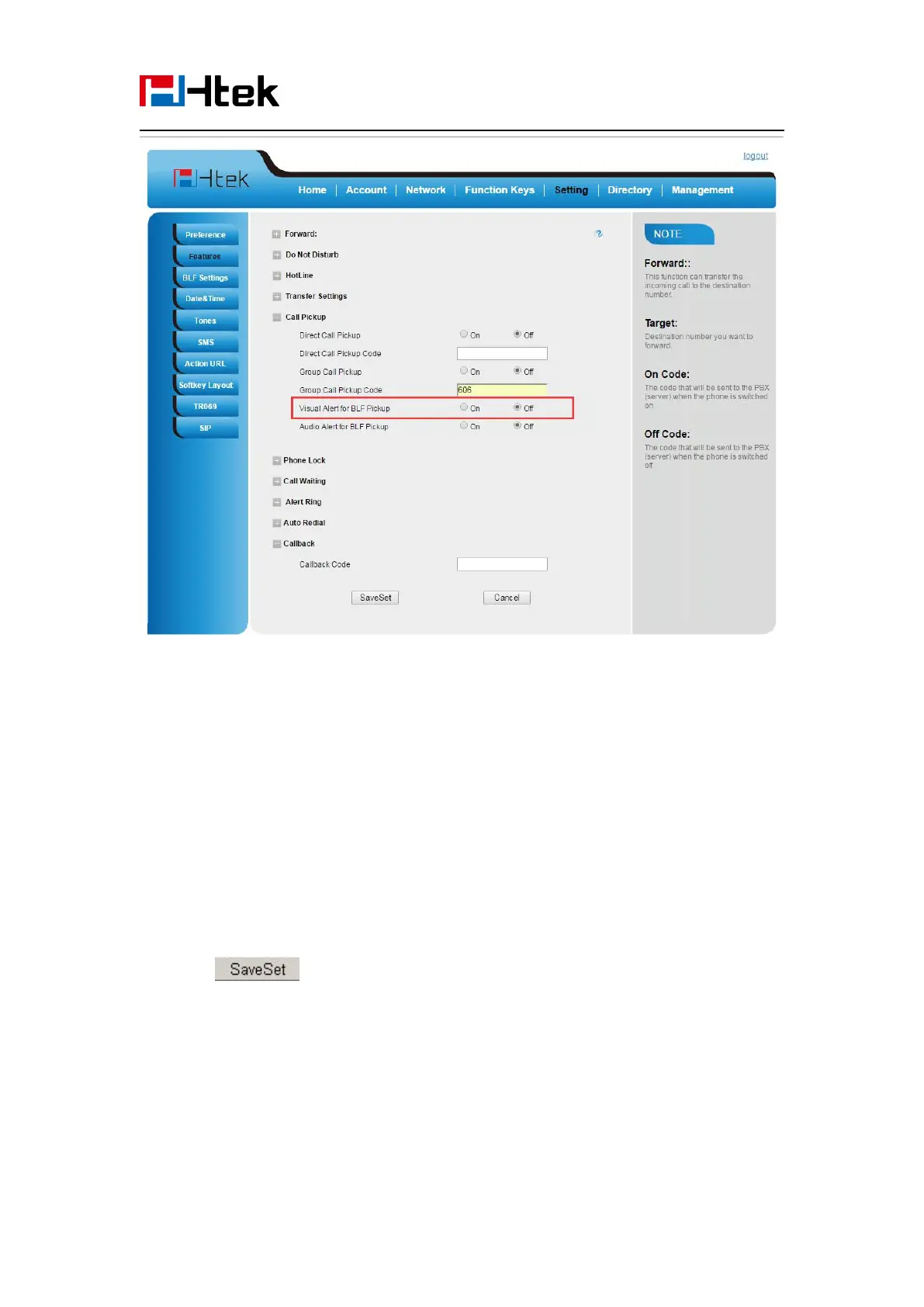 1. Click Setting →Features →Call Pick up→ Audio Alert for BLF Pickup