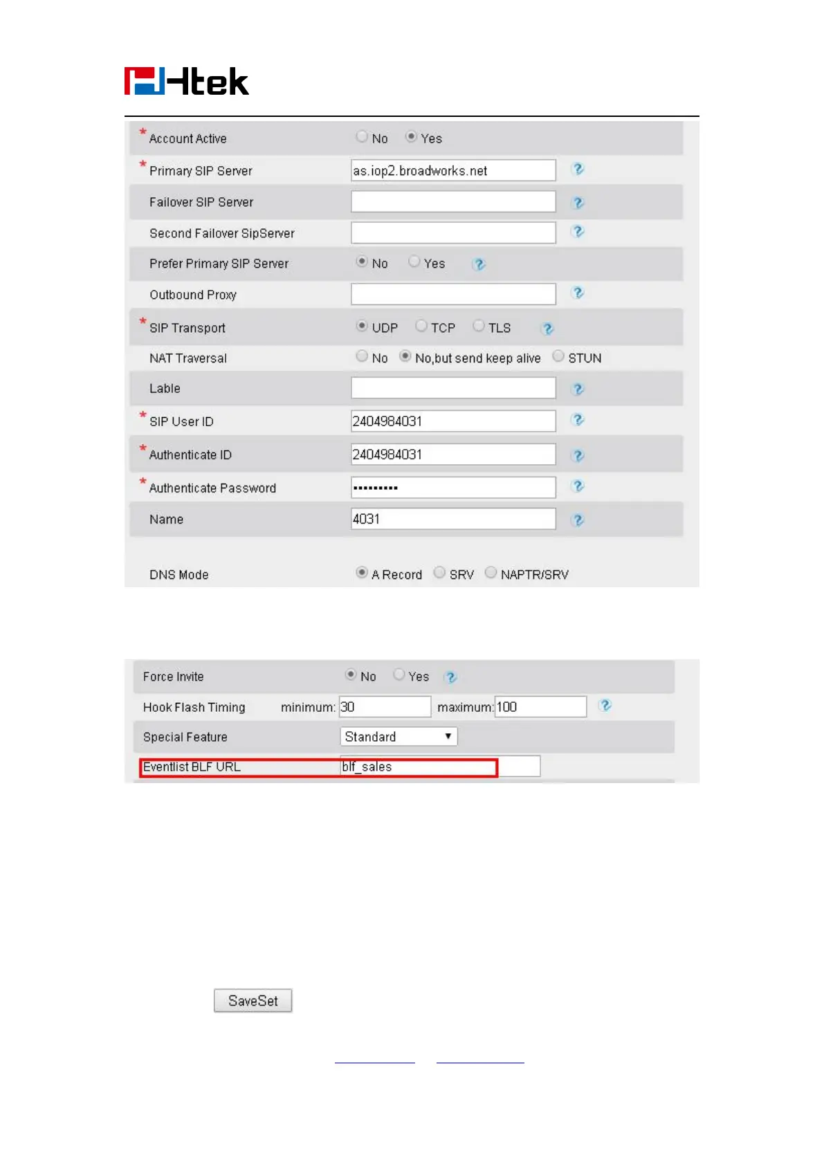 2. Click Advanced and then fill the Eventlist BLF URL.