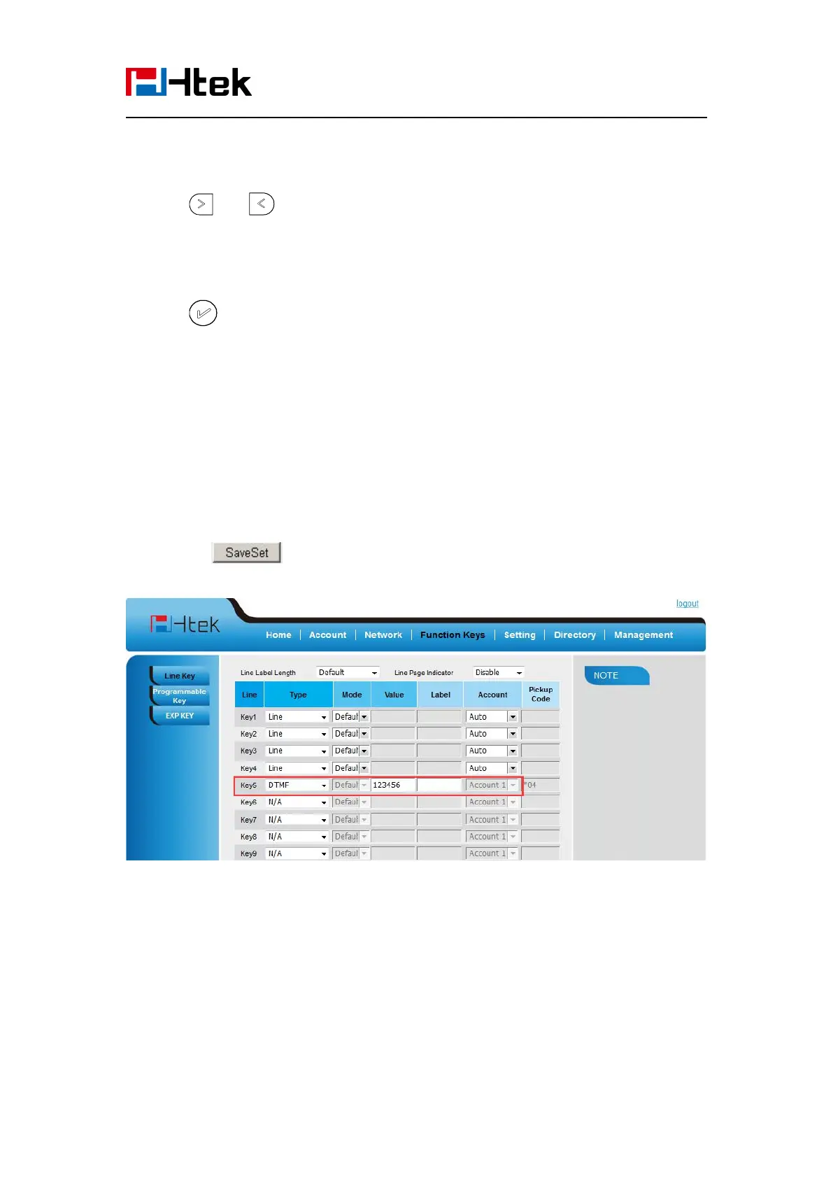 2. Select the desired Line or Line Key and select DTMF in the Type.