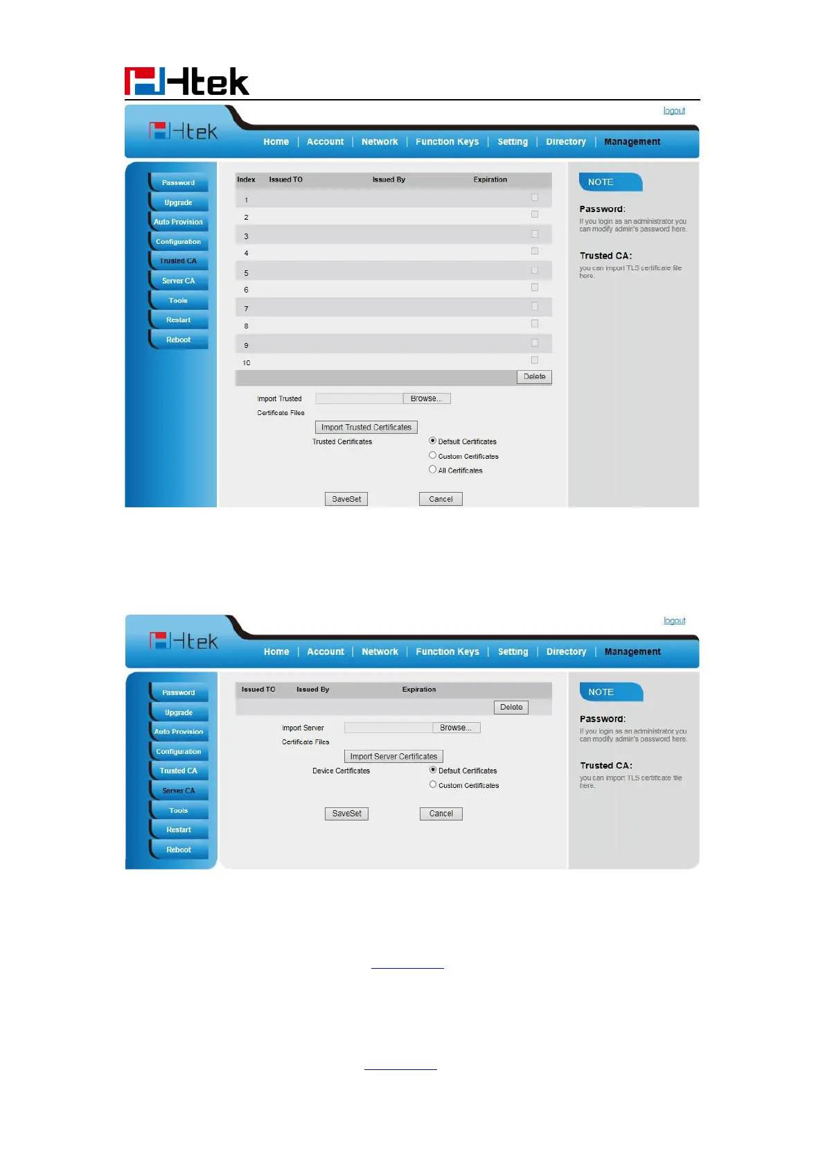Htek UC926 - Certificate Management; VLAN and LLDP Configuration