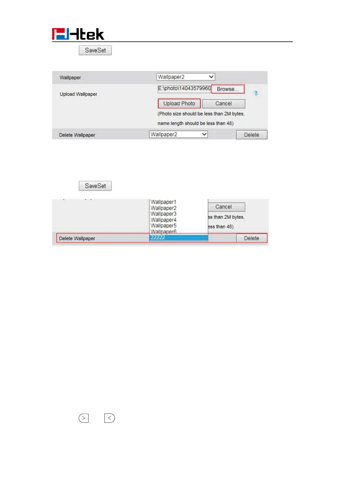 System wallpaper (Wallpaper1-Wallpaper6) cannot be deleted and only color IP Phone support
