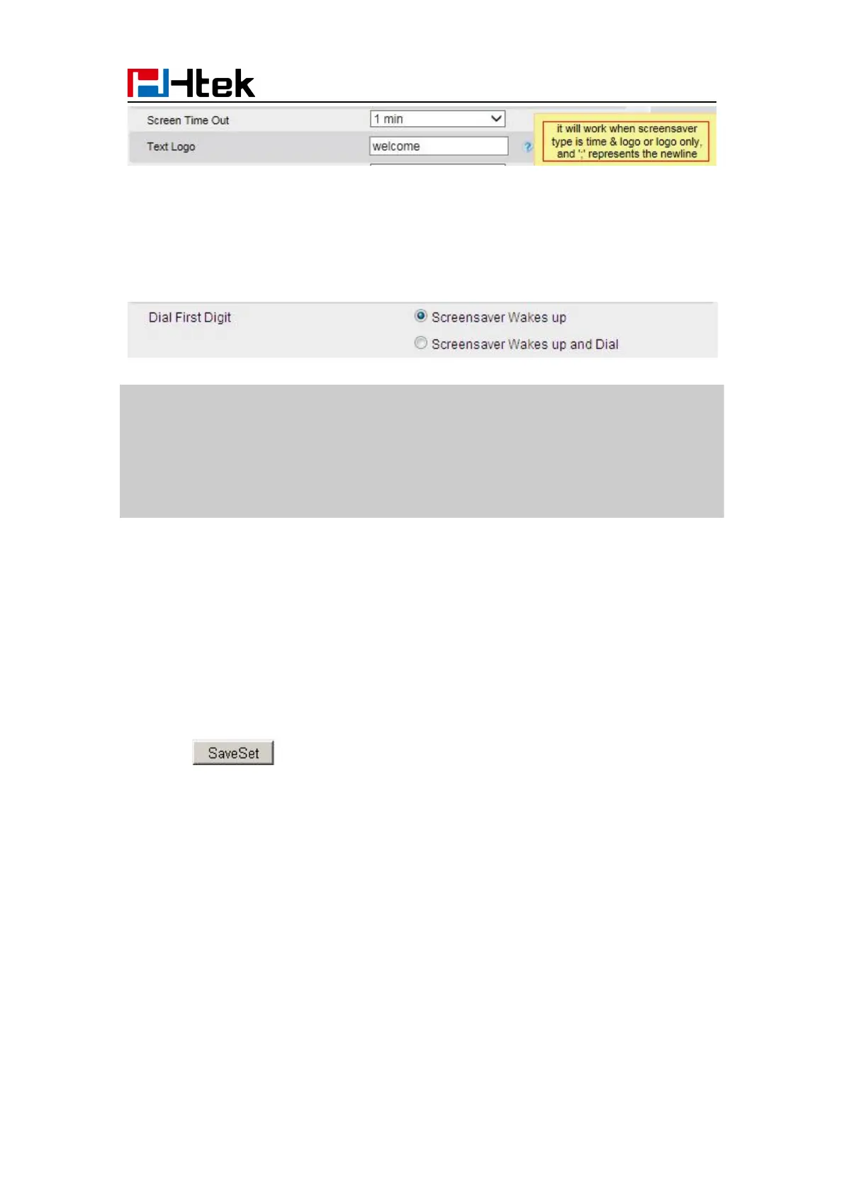 2. Choose Dial First Digit: Screensaver Wakes up or Screensaver Wakes up and Dial