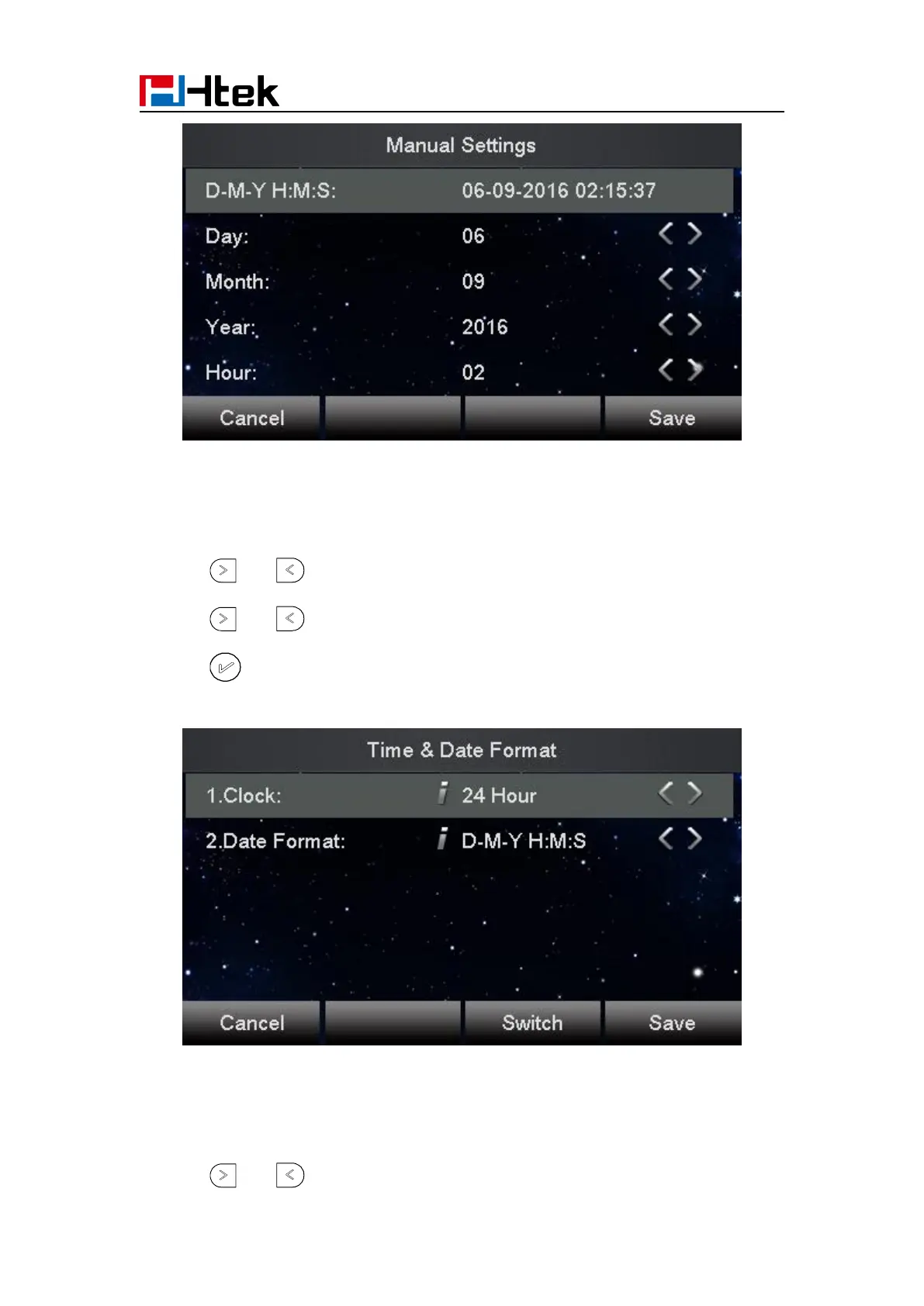 1. Press Menu → Setting → Basic setting → Time & Date Format