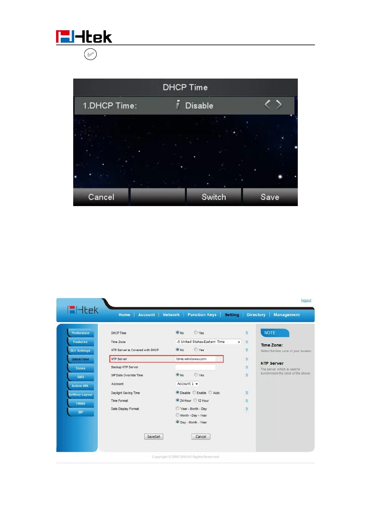 2. Setting → Date &Time →NTP Server
