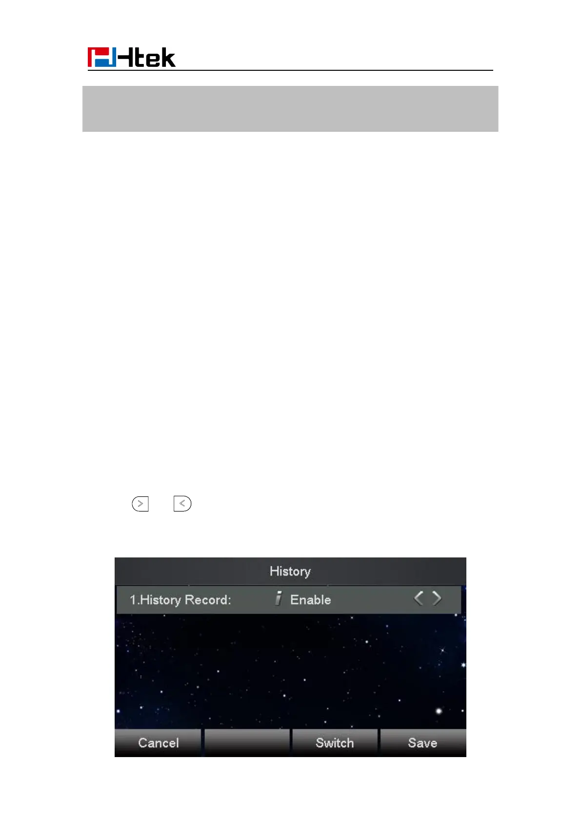 2. Press and or Switch soft key to enable History record.