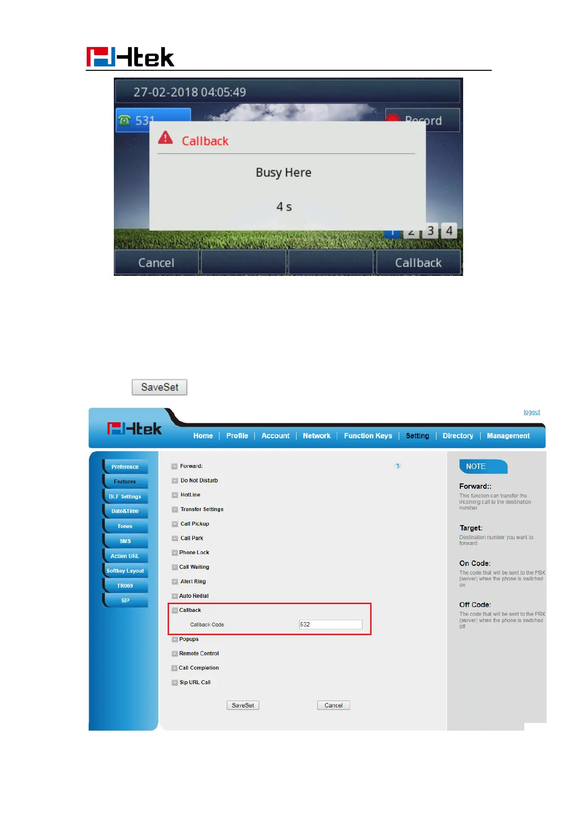 1. Click Setting →Features →Callback .