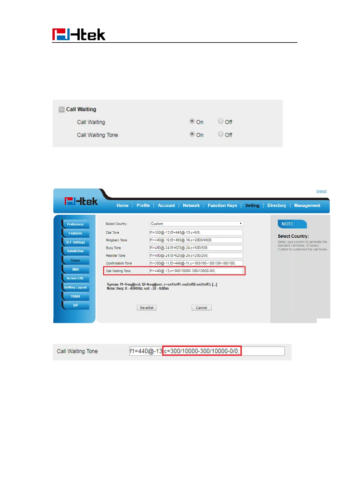 2. Select Call Waiting: On and Call Waiting Tone: On