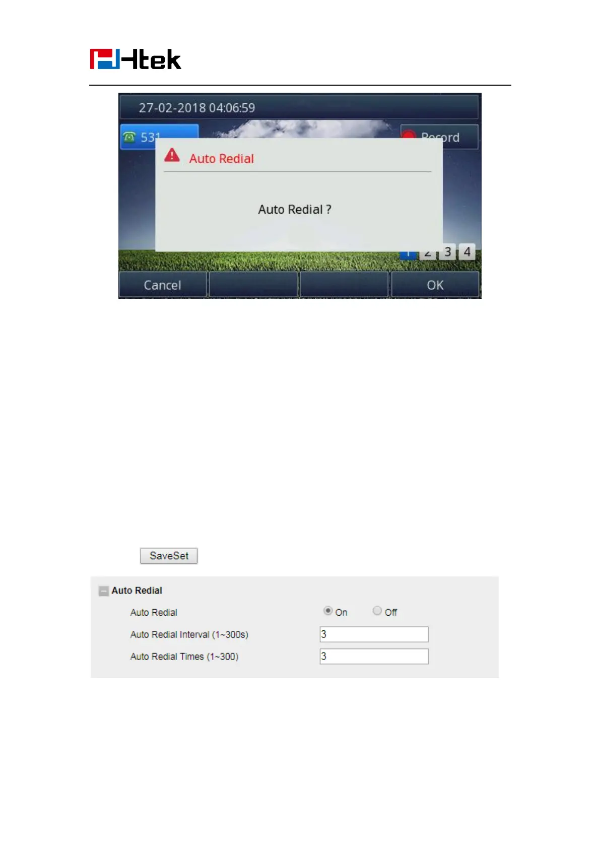 1. Click Setting →Features → Auto Redial