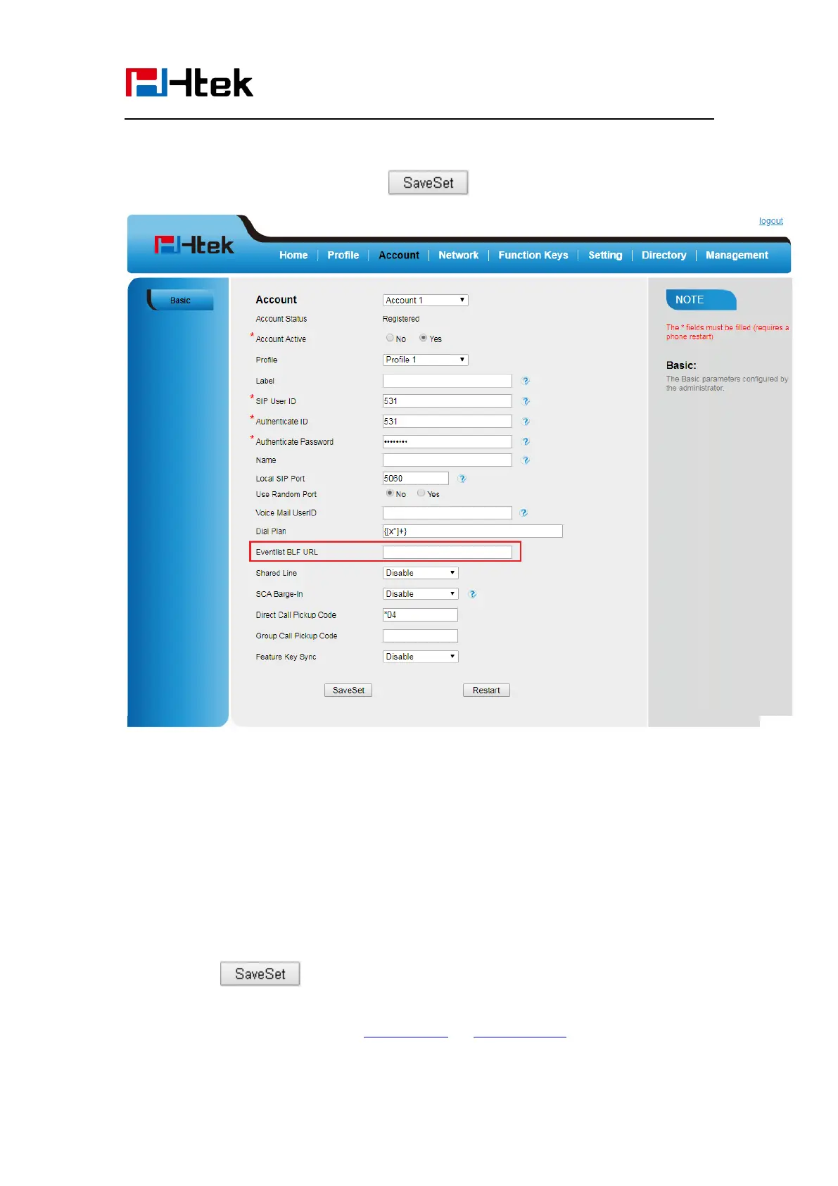 2. Fill the Eventlist BLF URL and click to save the configuration.
