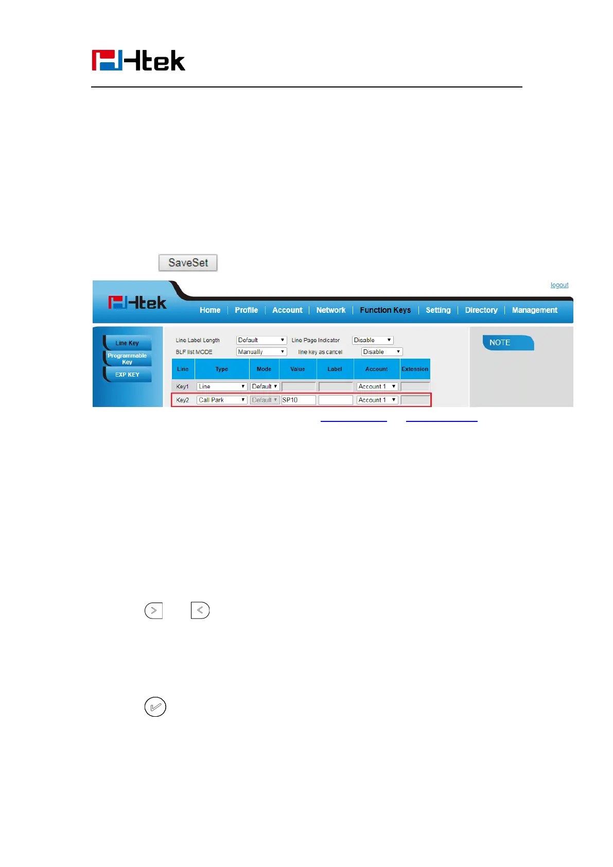 For More information for Call Park, please see: Call park note on www.htek.com/