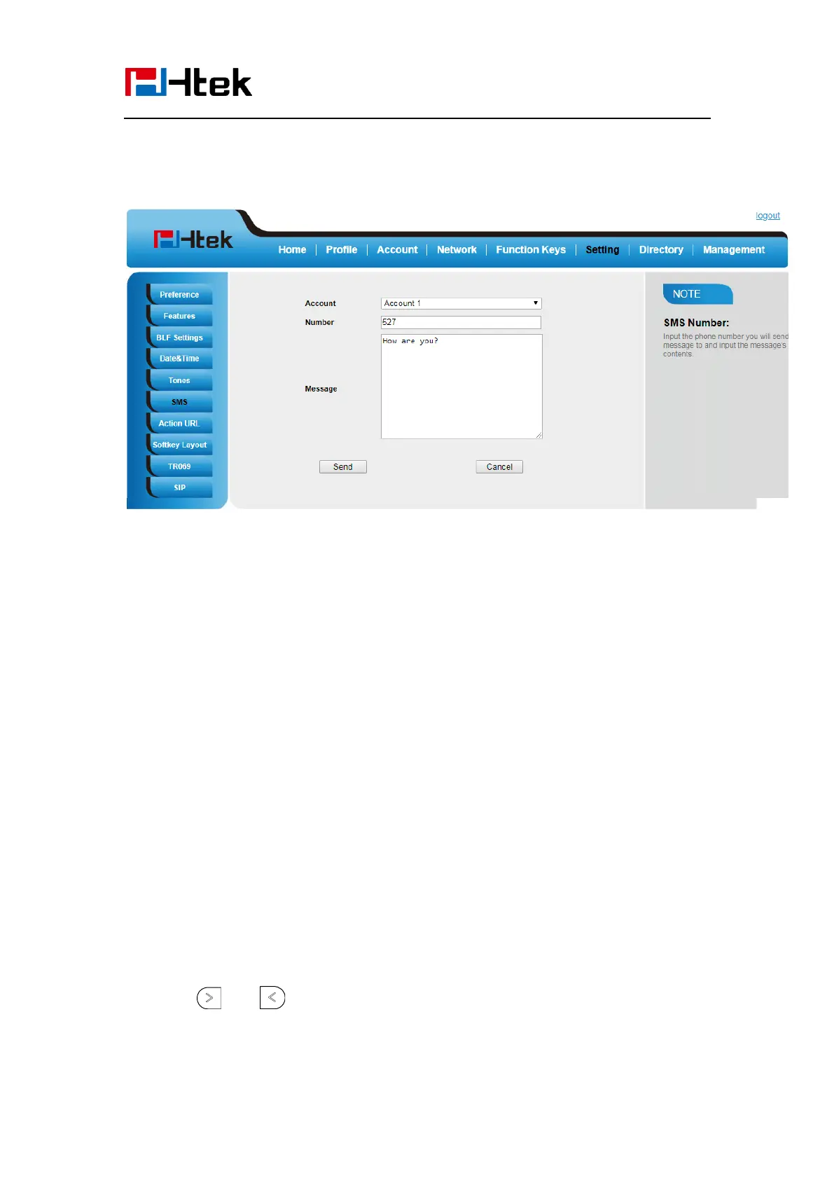 To configure the SMS via Phone interface
