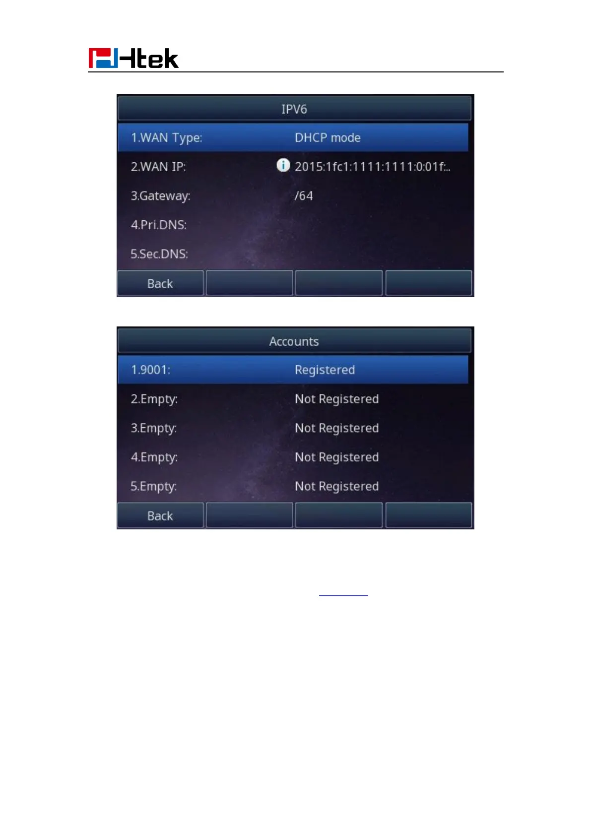 5. Press Menu →Status →Account (UC926E support sixteen accounts)
