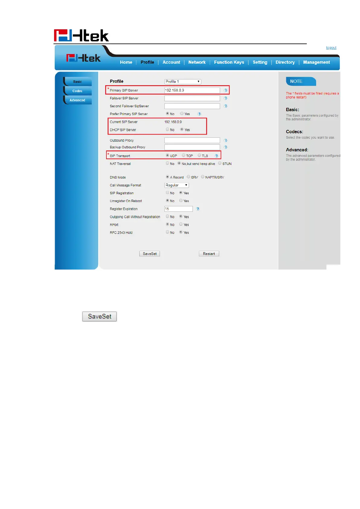 2. Fill the Primary SIP Server and other profile information.