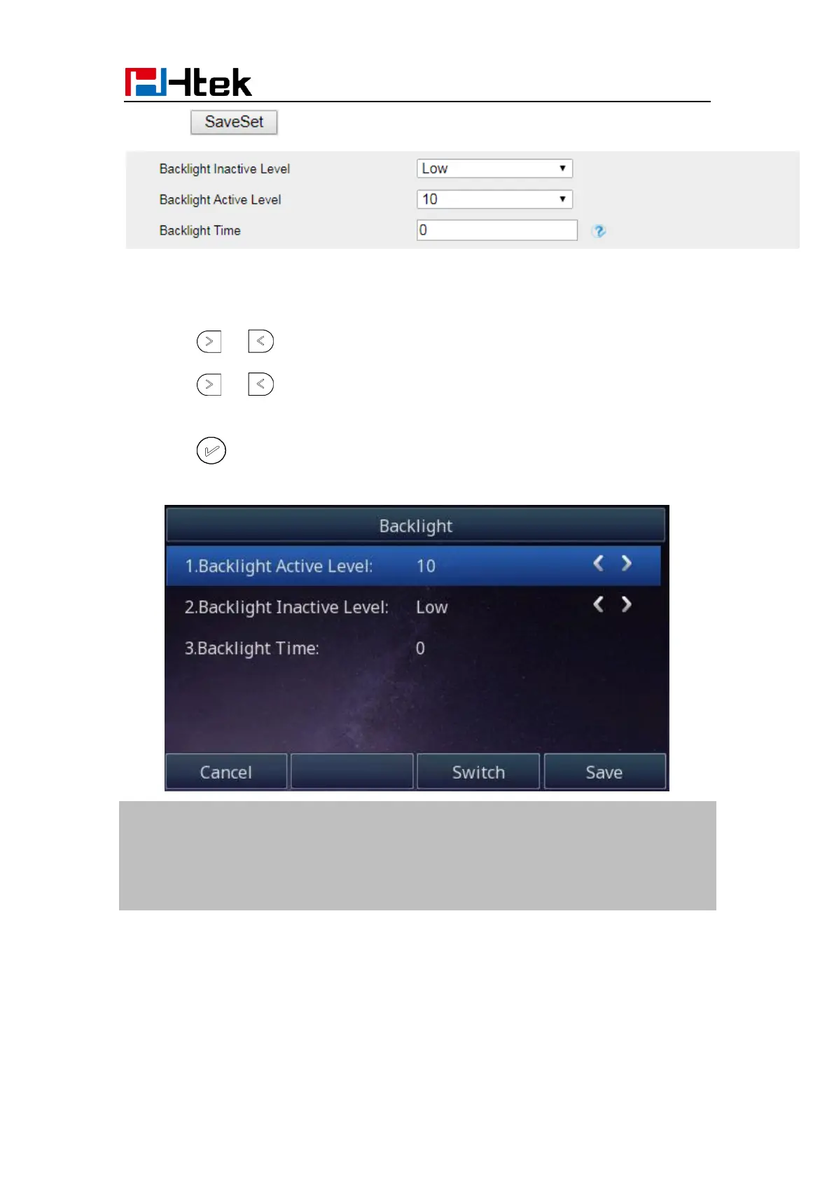 To set Backlight via Web interface phone interface: