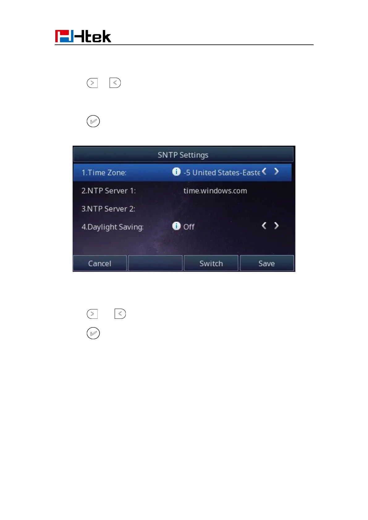 1. To press Menu → Settings → Basic Setting → Time & Date → SNTP Settings