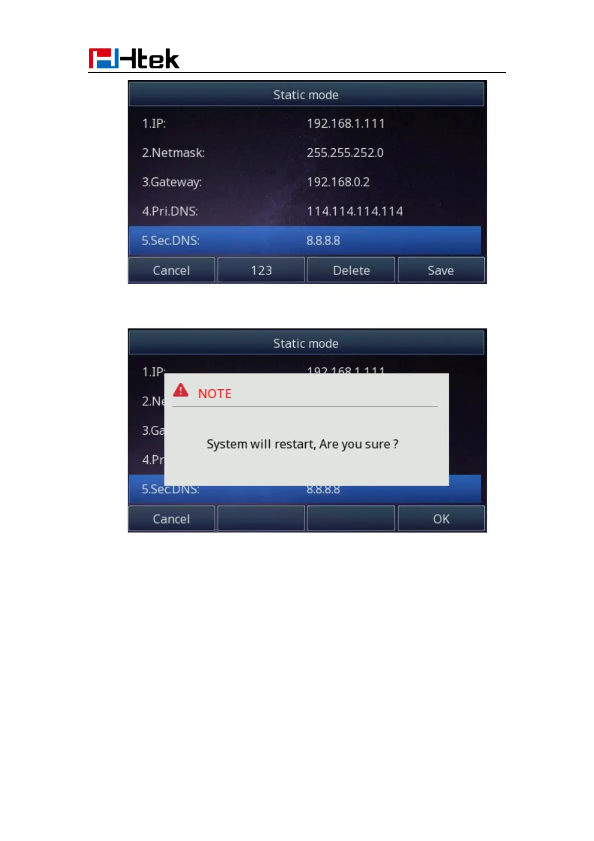 1. Press Menu→ Settings→ Advanced Setting (password: admin) → Network→ WAN