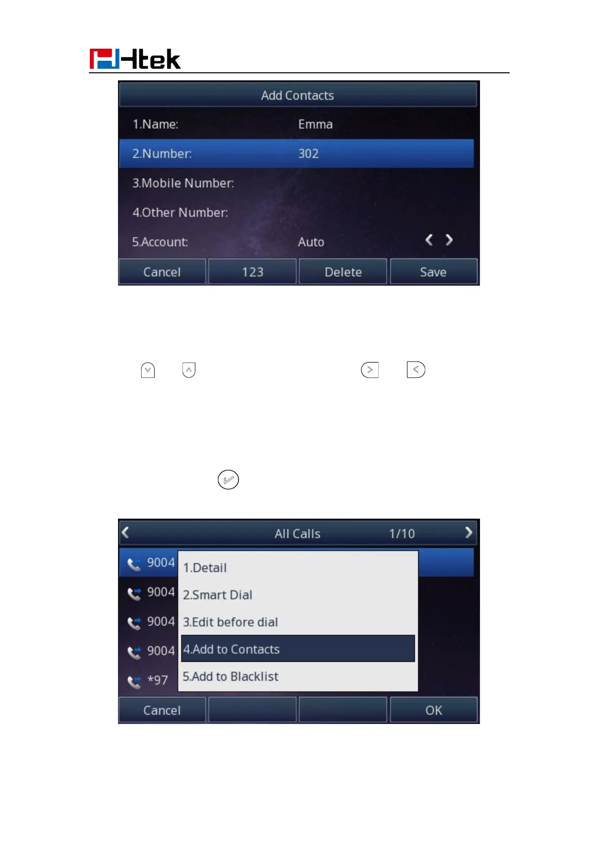 5. Press save soft key or to add the contacts successfully.